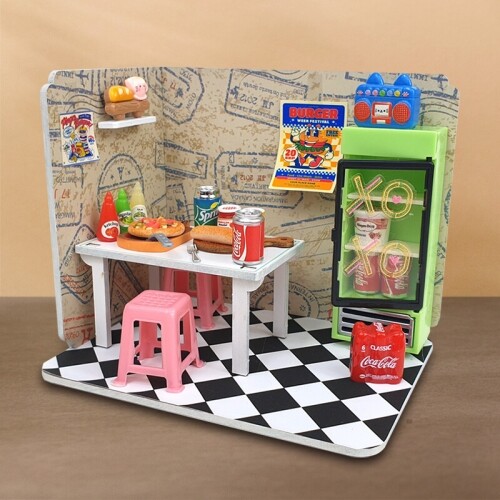인쇄 우드 DIY 미니어처 솜사탕 별 콕 떡볶이 가게 만들기 놀이 1개입