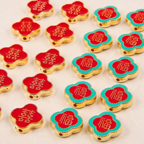 클로버 복 희 메탈 비즈 참 장식 10개입