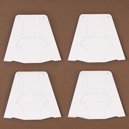 남자 한복9.4x8.5cm, 여자 한복8.3x7.9cm, 부채9.8x5.6cm, 버선7.3x7.4cm, 두께3mm