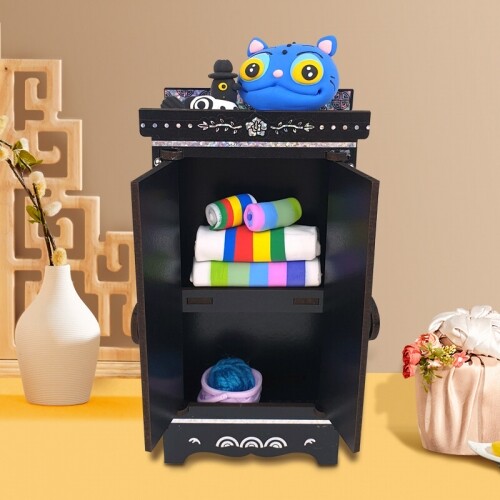 인쇄 우드 DIY 미니어처 검정 무지 장롱 옷장