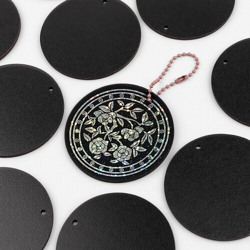 • 10개입 인쇄 우드 양면 블랙 1구멍 원형 데코판 7cm 상품번호 : 49660