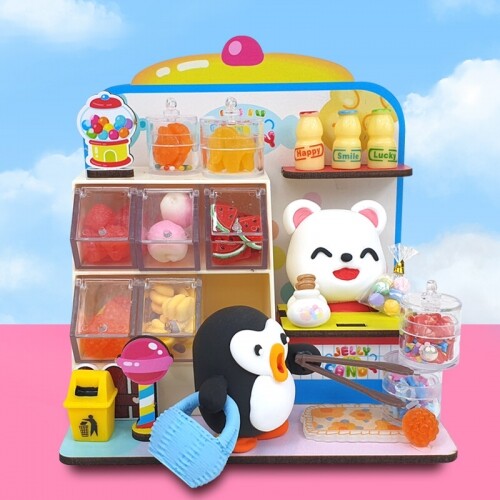 인쇄 우드 DIY 미니어처 곰돌이 젤리 캔디 가게 만들기 놀이 1개입