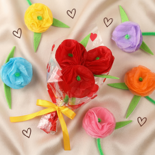 페이퍼 하트 패턴 비닐 카네이션 꽃다발 만들기