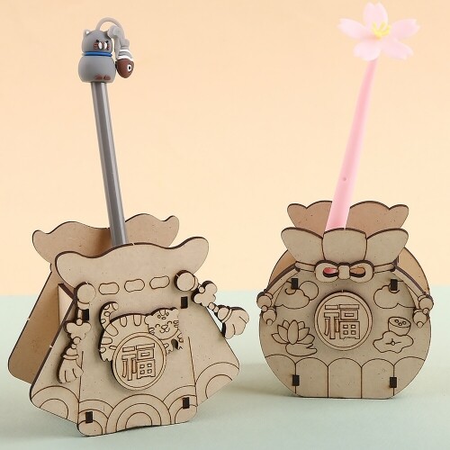 우드 입체 전통 복 복주머니 다용도 꽂이