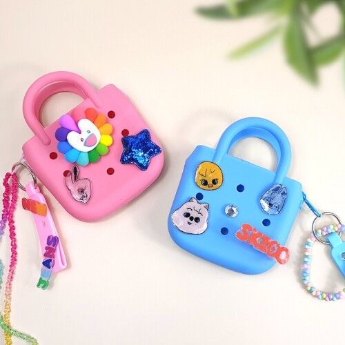 실리콘 손잡이 지퍼 가방 키링 열쇠고리 꾸미기 실리콘 가방 1개입