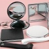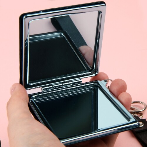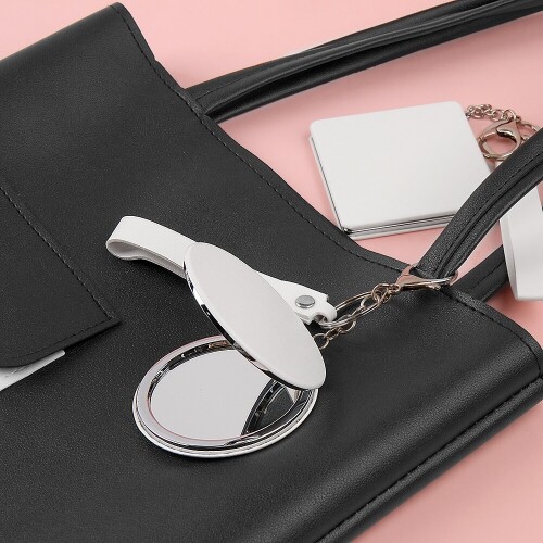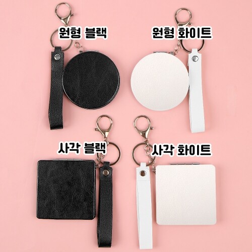 PU 휴대용 접이식 양면 사각 원형 손 거울 스트랩 1개입