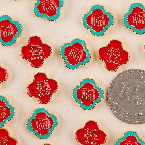클로버 복 희 메탈 비즈 참 장식 10개입