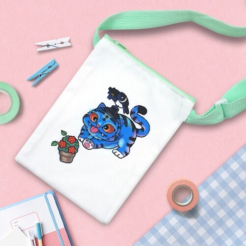 까치 호랑이 화분 색칠 지퍼 캔버스 가방