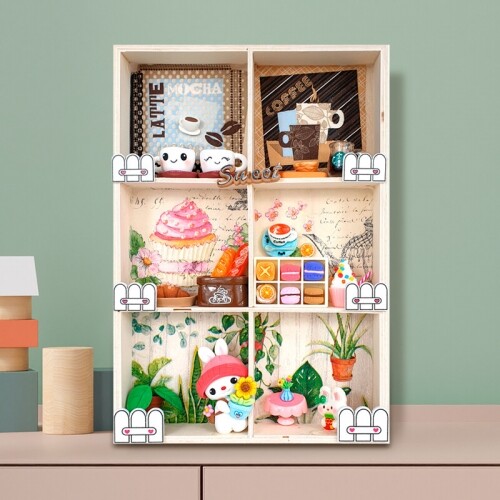 미니어처 우드 배경판 머신 무인 카페