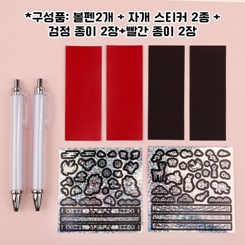 T-07-242 / 구성품: 볼펜2개+검정 종이 2장+빨간 종이 2장+자개 스티커 2종