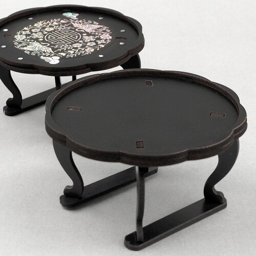 인쇄 우드 DIY 미니어처 전통 꽃 원형 검정 교자상