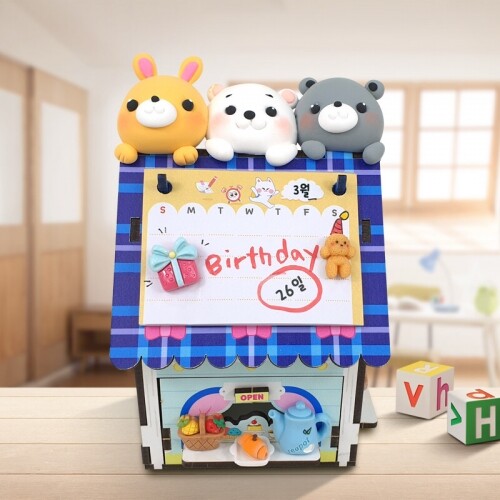 인쇄 우드 DIY 미니어처 양옥 하우스 만년달력 꽂이 세트