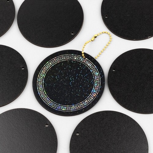 10개입 인쇄 우드 양면 블랙 1구멍 원형 데코판 8cm