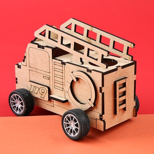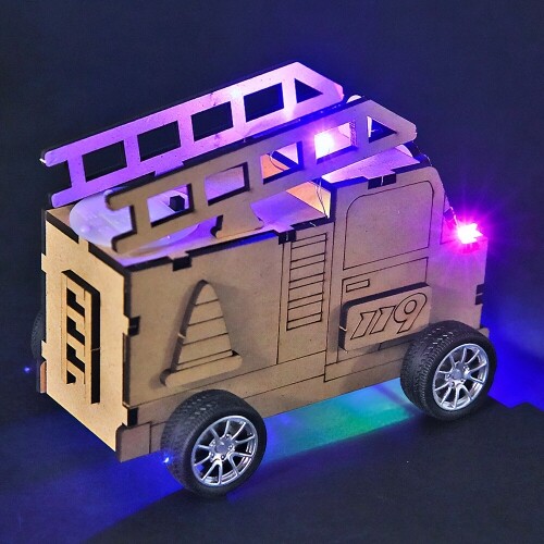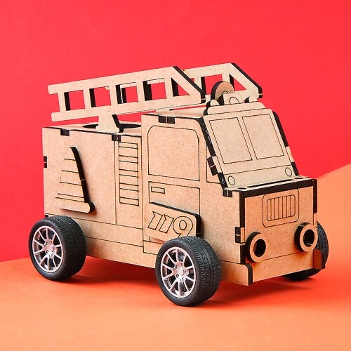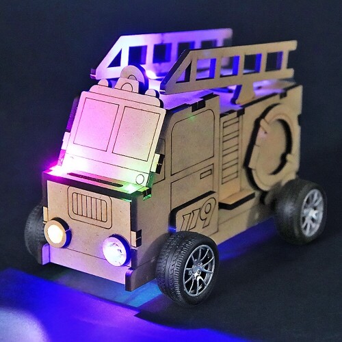 인쇄 우드 DIY 미니어처 긴급 출동 소방차 무드등 만들기