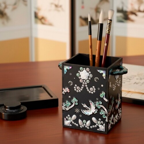 인쇄 우드 DIY 미니어처 검정 무지 꽃 손잡이 연필 꽂이